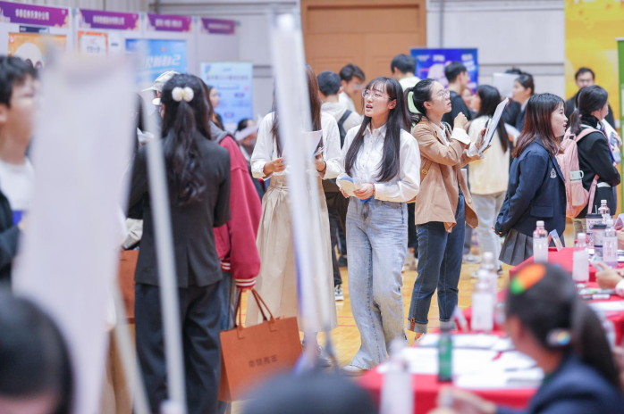 会场内人声鼎沸,随处可见企业与学生热情互动。同学们认真了解企业情况、招聘需求并介绍自身优势,企业招聘人员则积极解答学生关切问题,主动招揽精英人才。双选会历时2个小时,47家企业共收获投递简历千余份,体现出本次双选会于助力企业人才招聘和促进商科学子高质量就业上的推动作用。