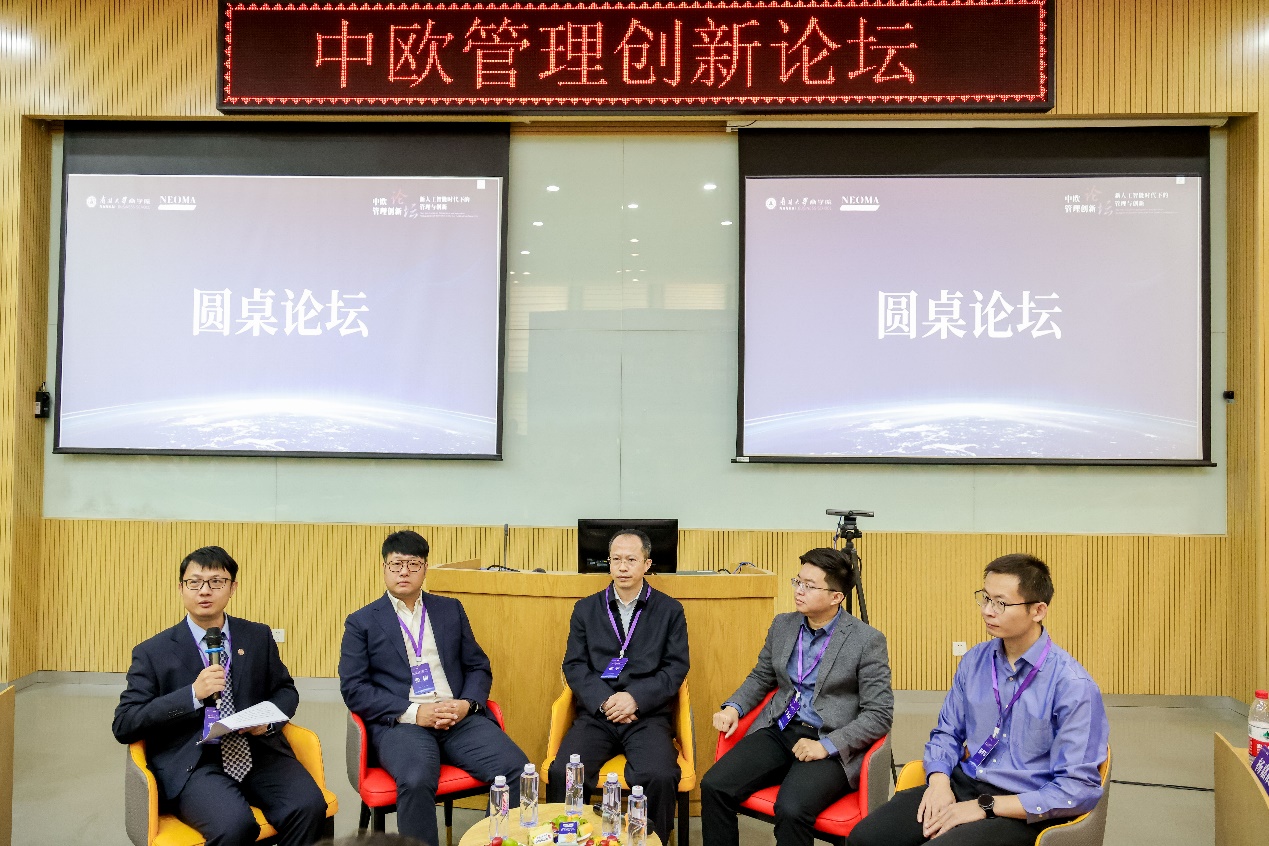 李凯教授作为主持人,就人工智能时代下的管理创新研究与实践这一主题,与业界嘉宾进行了圆桌对话,展开思想的碰撞与交流,挖掘了诸多智慧与洞见,并就人工智能下人力资源的管理,企业应用人工智能进行创新等问题与嘉宾畅谈。张楠表示,人工智能为人力资源的管理提供了很大帮助。张平认为,可以从药物研发、制造、营销、消费者互动等四个环节应用AI,创建智慧工厂。张少辰认为,人工智能有三个核心要素:数据、算力和算法、模型。他指出,人工智能是对于企业战略的辅助,而不是主要决策,未来依然要积极尝试,拥抱科技。杨华军表示,抖音集团主要在战略、办公、输出三个层面来应用AI。