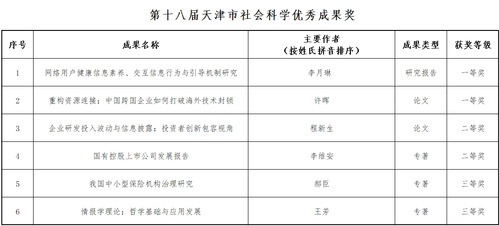 6项获奖!william威廉中文官网在第十八届天津市社会科学优秀成果奖评审中获佳绩