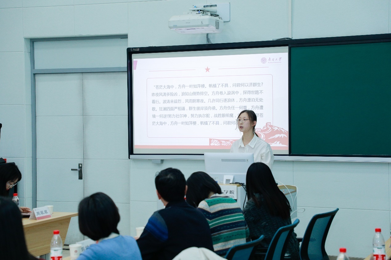 信息资源管理系教师党支部李樵老师作了“以论文《于方舟:百年南开第一位革命英烈》为案例的课程思政展示”主题报告,将于方舟烈士事迹作为期刊论文元数据著录实例,示范了如何将思政元素融入课堂教学。该门课程获得2023年度全国高校信息资源管理课程思政建设研讨会暨课程思政说课比赛、案例设计大赛特等奖。