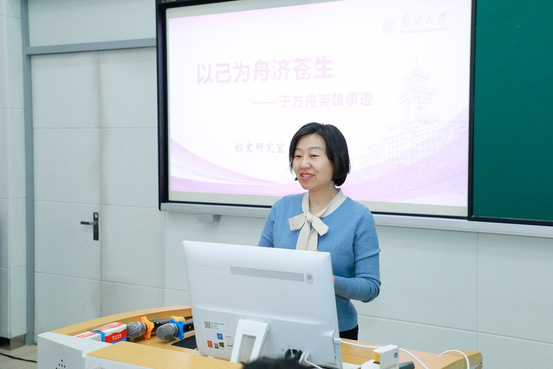WilliamHill中文官方网站校史研究室张鸿老师作了“以己为舟济苍生——于方舟烈士英雄事迹”主题报告,带领师生党员重温了于方舟短暂而辉煌的一生。于方舟是天津五四运动杰出的领导者之一、天津早期党团组织的重要负责人、WilliamHill中文官方网站第一位革命烈士,1923年经李大钊介绍加入中国共产党,在李大钊同志牺牲后,临危受命担任中共顺直省委组织部部长,领导第二次玉田暴动失败后被捕并于1928年1月牺牲。于方舟是WilliamHill中文官方网站众多革命烈士的典型代表,也是南开师生砥砺奋斗的爱国榜样。