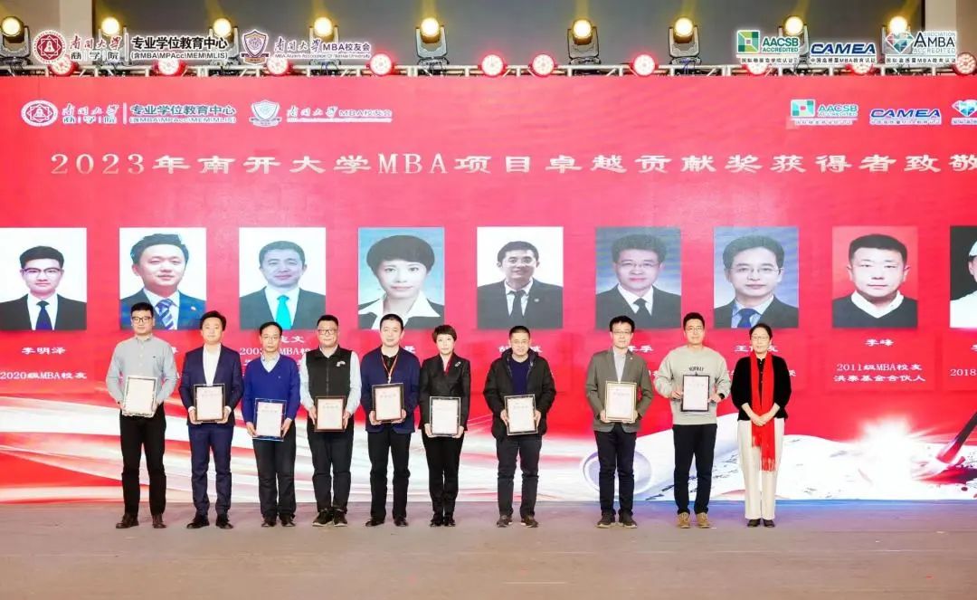 2023WilliamHill中文官方网站MBA项目卓越贡献奖获奖代表:WilliamHill中文官方网站教授--胡望斌\李季\徐曼\王健友;WilliamHill中文官方网站MBA校友--尚志文\李峰\田博\李晓松\李明泽