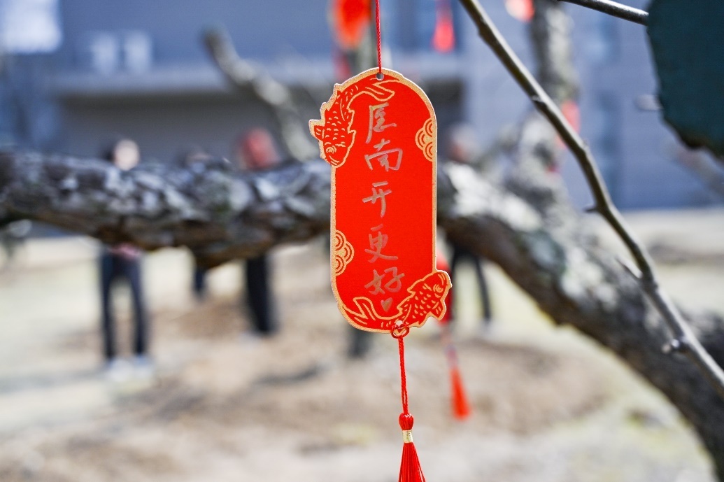 随后的互动环节将整个活动推向高潮,知识竞答,教工同学竞相抢答不分伯仲;祈福挂牌,将心中的愿景希望寄托于这片生机盎然之中。让每一片承载着对未来的希望和梦想的卡片轻轻地挂在枝头,借着春风,在这片生机勃勃的乐土里摇曳生姿,共同将心中的愿景寄托于春日的生机盎然;梨园诗会,在经典诗词中体悟千年梨花之美,传承经典诗篇,跟随古人的足迹,背诵那些赞颂梨花的诗句,聆听每一个韵脚跳跃的音符,感受每一句诗词中蕴含的深厚文化底蕴。