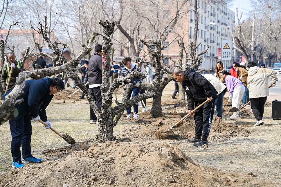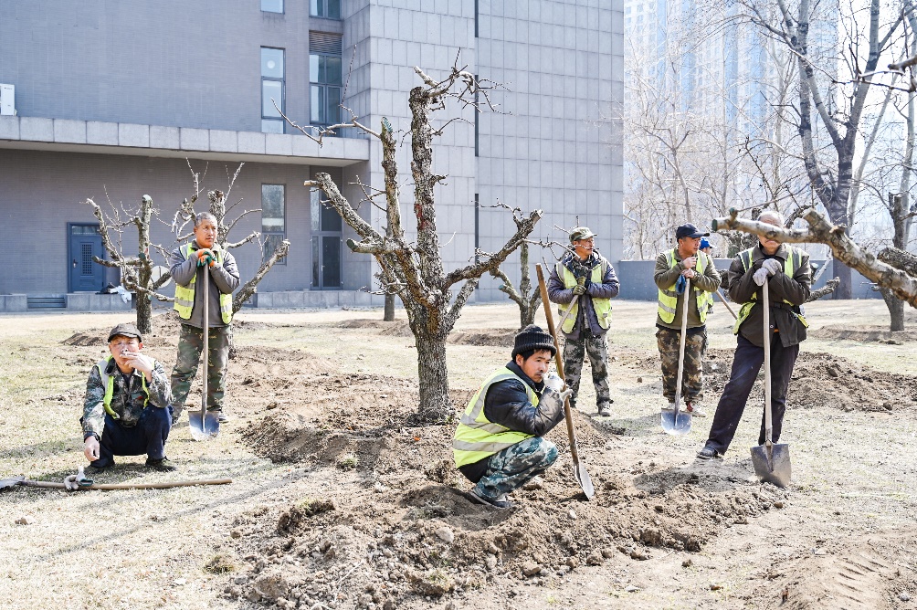 在绿苑园林公司负责人秦海英及各位工作人员的指导和带领下,老师同学们分组进行“植上春山·劳动竞赛”。各位同学和老师被分成不同的小组,负责一块指定的区域,一起栽种苗木,共同完成梨树的种植工作。额头沁出的汗水遮不住面颊洋溢的笑靥,欢声笑语、铁锹挥舞,大家满腔的热情和团队合作就像一支默契的乐队在演奏着大自然的赞歌。这不仅是对个人力量的考验,更是团队协作精神的大比拼。