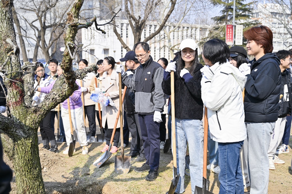 教工支部书记张建勇说:“在这个春意盎然的植树节,有幸参与了别开生面的“植此青绿·与‘梨’相约”活动。劳动环节中,亲手为梨花树苗培土、浇水,每一铲土、每一滴水都承载着我们对自然的尊重和对未来的希望。劳动竞赛不仅增强了团队协作,也让我们在欢声笑语中体会到了劳动的乐趣。最后共同建设美丽中国的倡议,则既是对环境的承诺,也是对我们共同家园的热爱。让我们携手前行,让绿色成为我们生活的底色。”
