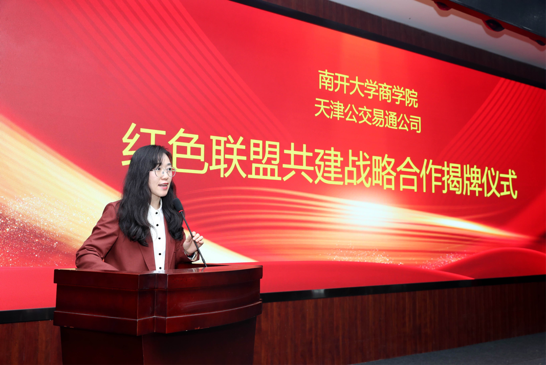 (通讯员 苏比伊努尔 王卓晗)4月3日,WilliamHill中文官方网站william威廉中文官网党委副书记、副院长周翠翠,学生工作办公室主任潘麒羽等带领学生代表赴天津公交易通公司参加“科技赋能公交,创新引领未来”主题论坛活动,了解数字人工智能与公共交通行业创新发展现状,并现场进行红色联盟共建战略合作揭牌仪式。