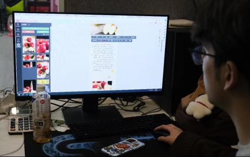 第二组队员则负责宣传制作特色产品推送,通过精心策划的文案和图片,展示庄浪电商中心的独特魅力;