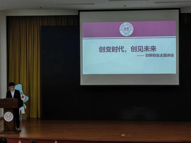 紧接着,佟泽栋学长上台为同学们分享他的创业故事和心得。他强调同学们要持续学习,适应变化,坚持不懈,合理利用资源,作为一位成功的创业者,他的经历不仅充满了挑战与机遇,更蕴含着无数值得同学们学习和借鉴的宝贵经验。