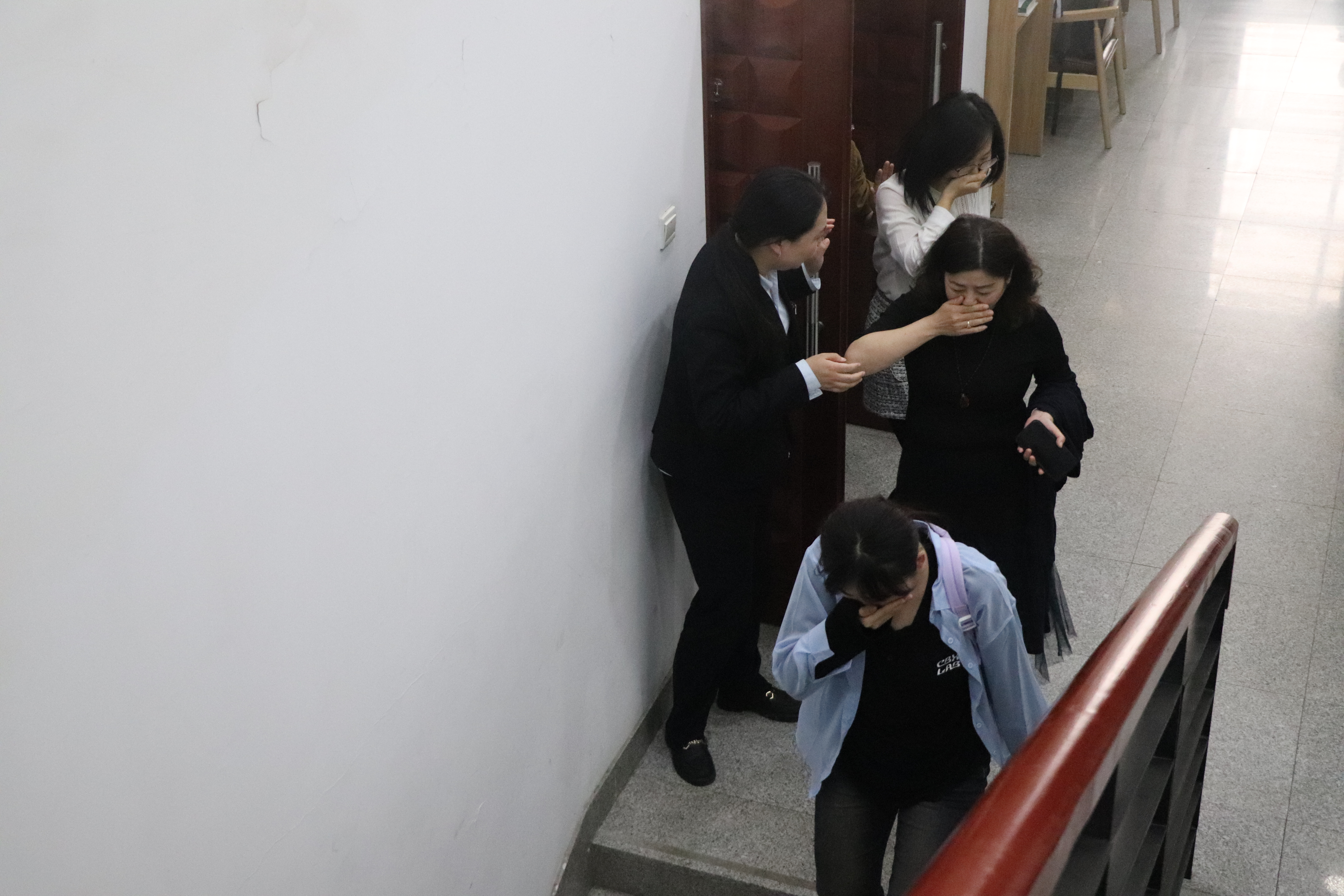 下午两点,演练现场模拟楼道垃圾桶发生火灾,伴随着紧急警报声响起,楼内人员迅速行动通知疏散,所有人员在疏散小组的指挥和带领下,捂住口鼻,弯腰贴墙,沿指定路线快速有序撤离,历时8分钟安全撤离到指定集合地点。