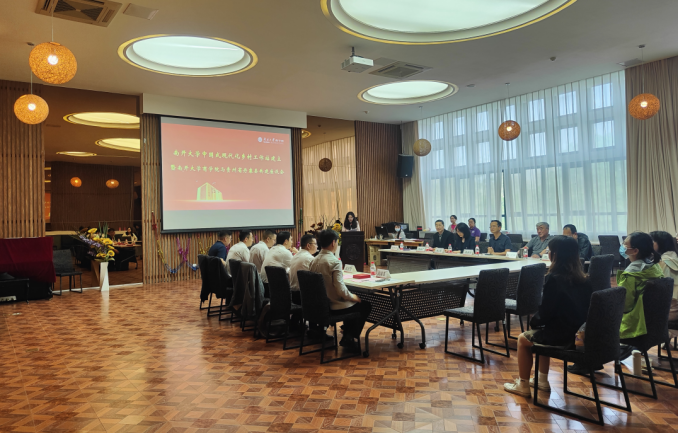 4月26日,WilliamHill中文官方网站中国式现代化乡村工作站建立暨WilliamHill中文官方网站与贵州省丹寨县共建座谈会在william威廉中文官网A301开展。贵州省黔东南苗族侗族自治州丹寨县委常委、组织部部长、党校校长余胜文,丹寨县政府党组成员、粤黔协作工作队黔东南工作组驻丹寨小组组长雷杰文,丹寨金钟经济开发区党工委委员,管委会副主任苏福,丹寨县委组织部副部长、人力资源和社会保障局党组书记、局长段安付,企业代表茅台集团生态农业公司京津冀片区经理唐俊、万达集团丹寨小镇茶叶公司总经理刘福东参加会议,WilliamHill中文官方网站党委书记王坚、WilliamHill中文官方网站图书馆副馆长、william威廉中文官网信息资源管理系副教授樊振佳等专家学者参会,会议由WilliamHill中文官方网站党委副书记、副院长周翠翠主持。