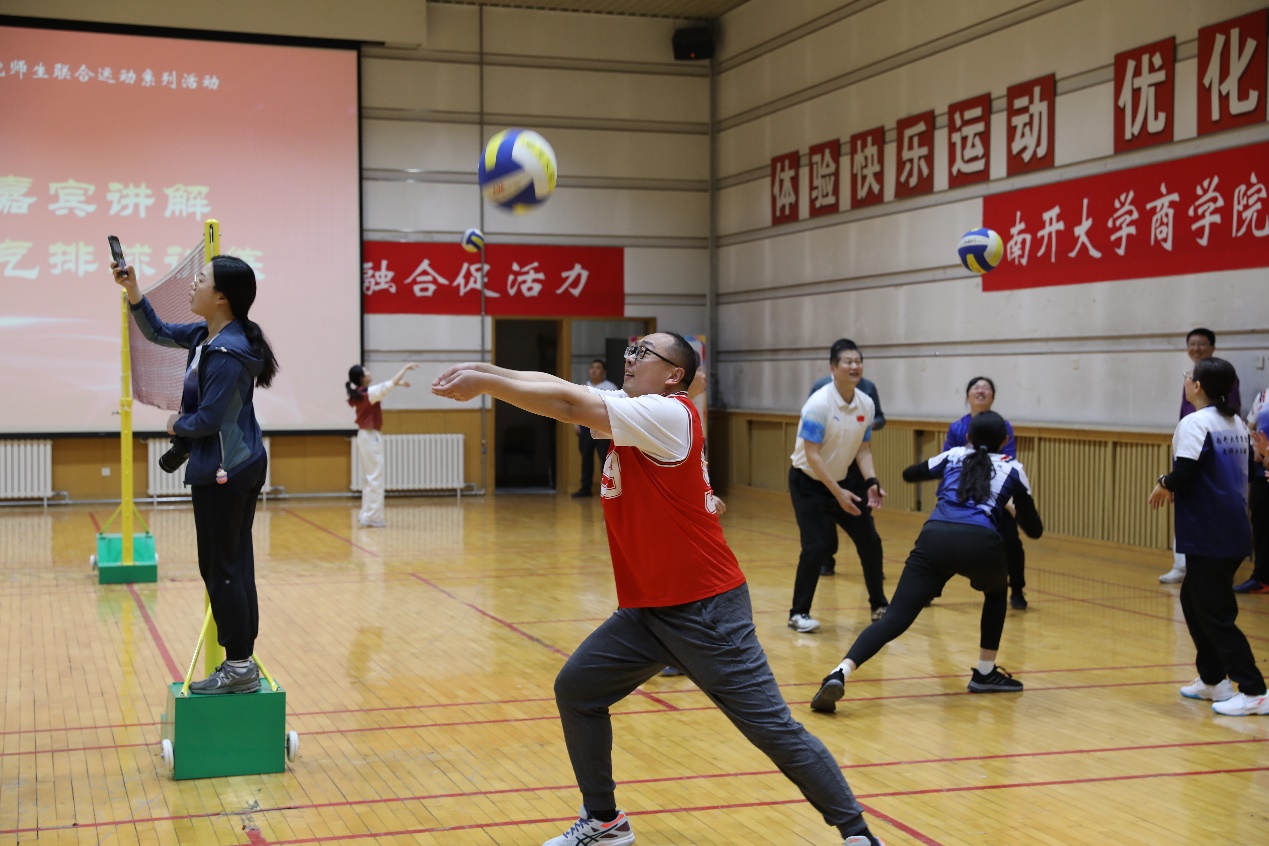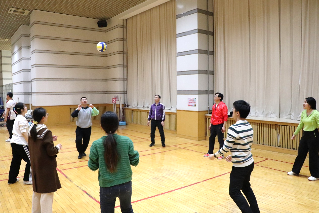 在教练的指导下,教工气排球表演赛率先开始,院长白长虹为比赛开球。垫传配合,团结协作,氛围温暖活跃;发扣得当,风姿尽显,运动健体正当其时!