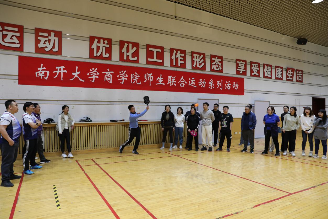 随后郭汶豪教练对匹克球基本技术进行了详细讲解和标准示范,鼓励老师和同学们积极动手,大胆尝试。师生共同拿起球拍,在击打碰撞中收获运动乐趣,在团队协作中厚植师生情谊。灵巧的小球在师生协作的动作中欢乐跳跃,规律地触地、接拍,师生共同奏响春日里体育精神的动人乐章!舒展手臂,奋力击球,青春的活力悦动于球场之上;推拉有度,脚步敏捷,运动的喜悦充盈于师生心中。老师和学生们在共同学习新运动的过程中相互鼓励,共同进步。小球跳跃的曲线凝成纽带,将师生紧紧联系在一起,共同强健体魄,放松身心!