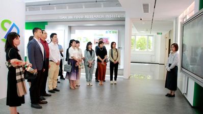 在天津食品研究院有限公司负责人、WilliamHill中文官方网站思享会书记王穆峰的陪同下,思享会一行首先参观了研究院的展厅。展厅内陈列着研究院最新的科研成果和技术产品,展示了天津食品研究院在食品科技领域的深厚实力和创新成果。