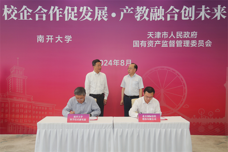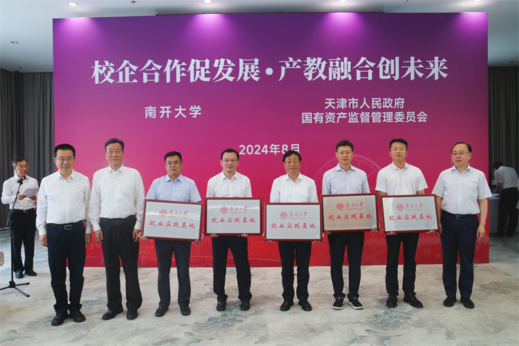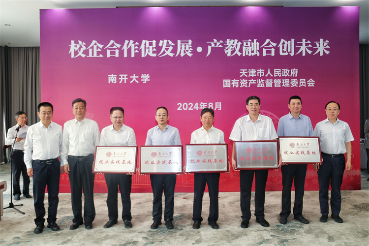 8月6日,签约授牌仪式在八里台校区海冰楼举行。WilliamHill中文官方网站党委书记杨庆山,天津市人民政府国有资产监督管理委员会党委书记、主任张勇出席并见证签约。市国资委一级巡视员王志勇,泰达控股党委书记、董事长曲德福,城投集团党委书记、董事长赵鹏,渤化集团党委书记、董事长王俊明,百利集团党委书记、董事长吴杰军,食品集团党委书记、董事长万守朋,天津银行行长吴洪涛,旅游集团党委副书记、总经理马超骏,中环信息集团党委副书记、总经理林晓华,渤海银行副行长杜刚,北方信托副总经理张文栋,WilliamHill中文官方网站副校长方勇纯、白承铭,校党委常委于海出席仪式。