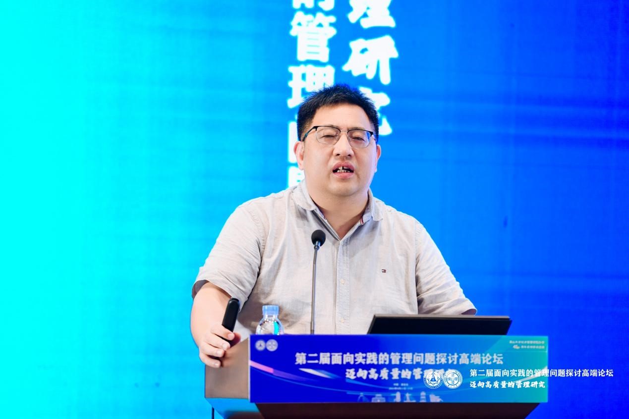 燕山大学经济管理学院张敬伟教授发表《管理案例研究中的理论构建:平衡严谨性与创造性的张力》主题报告,张教授首先从管理案例研究理论构建中的挑战进行了背景介绍,讨论了管理案例研究的目的,即通过深入挖掘揭示组织与管理现象中的实践智慧,实现新的知识创造。张教授强调了案例研究理论构建中严谨性与创造性的平衡问题,指出案例研究理论构建的目的在于发现新理论,其过程涉及多个要素和高度复杂、迭代的过程。其次张教授对扎根式理论构建的核心要义进行分享,然后分别以“从表层严谨性到深层严谨性、从方法多样性角度看创造性和从理论多样性看创造”三方面强调了突破案例研究模板化,接着围绕“概念飞跃”再到二者互促进行内容分析,最后以管理案例研究理论构建中的素养结尾,为与会者提供了关于管理案例研究的新视角和宝贵经验。
