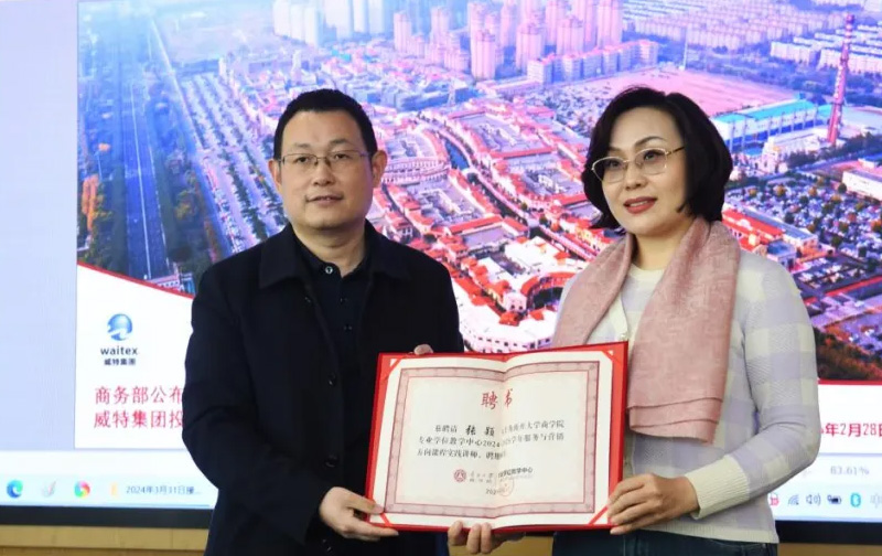 威特集团首席执行官张颖女士带领大家来到威特集团会议室,与大家分享威特集团的发展历程及佛罗伦萨小镇商圈近期赛事活动。美国威特集团是包含威特供应链服务、威特服装公司和威特全球投资的全球化综合集团,威特集团佛罗伦萨小镇、创意米兰生活广场、V1 汽车世界三大板块所形成的特色消费生态圈在国际消费中心场景下的规划和打造,以“新技术”、“新业态”和“新模式”支撑传统消费拓展。WilliamHill中文官方网站专业学位教学中心副主任梁峰为张总颁发了服务与营销方向课程实践讲师聘书。