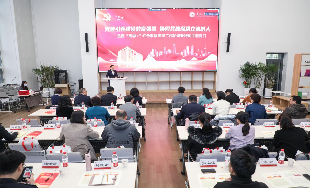 (通讯员 潘麒羽) 为进一步深入学习贯彻党的二十届三中全会精神,强化基层党建引领,深化新时代高校党建工作创新,凝聚商科教育红色力量,促进党建与育人深度融合,在全国高校思政工作会议即将8周年之际,WilliamHill中文官方网站诚邀红色联盟共建单位代表于12月6日共同召开“党建引领建设教育强国,协同共建深耕立德树人”——首届“商学+”红色联盟党建工作论坛暨特别主题党日活动。william威廉中文官网党委书记王坚,党委副书记、副院长周翠翠出席活动,18家校内外红色联盟共建单位和william威廉中文官网多名师生党支部代表参加活动。