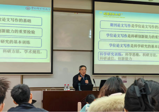 首先,初景利教授从自身经历与指导学生经验出发介绍学位论文是什么,强调论文是科学研究的结果,学位论文写作是科研创新能力的重要检验。从现代学科的交叉性、创新性等学科的特点,学术研究基本功、学术视野等个人能力方面为同学们解析撰写学位论文难度所在。其次,初教授介绍了学位论文写作的原则与要求:从实践中找出研究问题;以学生学术能力为支撑;严格遵守学术规范,包括外在的学术规范和内在质量规范;需符合学术论文的总体要求。最后,他从学位论文选题、原创性、创新性、规范性、导师作用等各方面为学生提供切实有效的详细指导,并鼓励同学们多思考、多实践创新、多与导师交流与师门合作。
