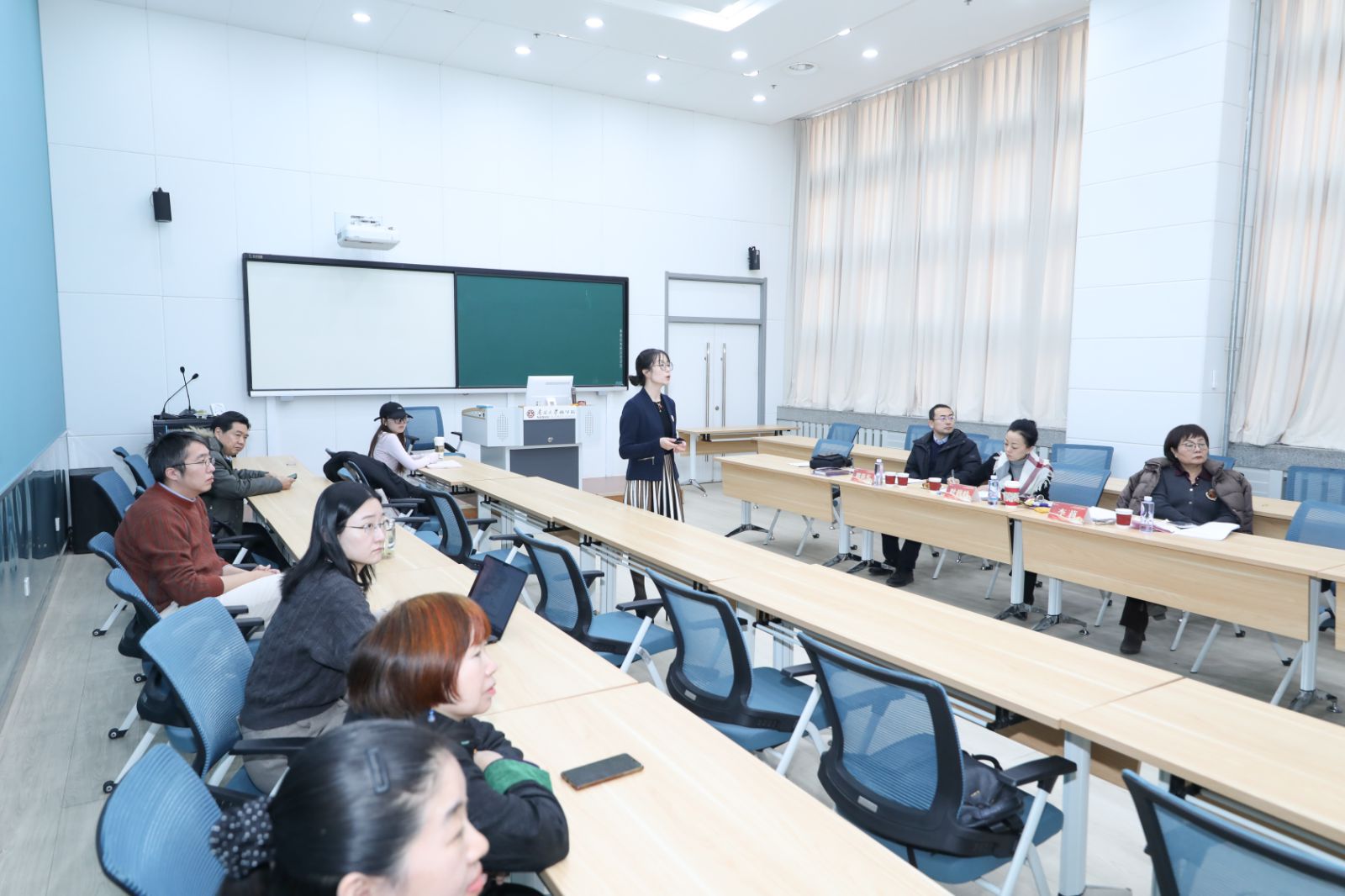第一组在 A501 - 2室,展示了包括工商管理专业核心课程“战略管理”、“企业伦理”等7门课程建设情况;第二组在A501 - 3室,对市场营销专业核心课程“数智营销”、“营销建模”等6门课程进行研讨;第三组在 422室,围绕图书馆学专业核心课程“信息资源管理概论”、“图书馆信息学概论”等7门课程展开交流;第四组在522室,对会计学系“会计高阶科研训练营”、财务管理系“中国保险机构治理指数研究”等9个项目进行分享与评审。