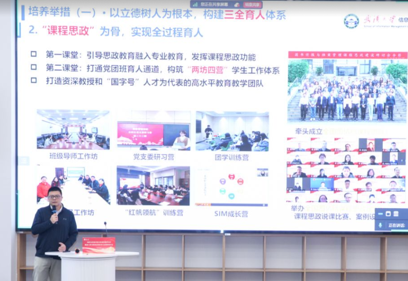 8位专家为大家带来了精彩纷呈的主题报告,围绕着深耕多年的各自学院本科教育教学整体工作、课程思政建设、数字教材建设等内容,分享先进经验与优秀做法。 窦军生教授的“学科交叉与科教融汇驱动下的本科专业建设进展”、任明教授的“数智驱动的信息资源管理人才培养实践与思考”、 贾良定教授的“南京大学工商管理类本科人才培养”、赵晶教授的“中国人民大学工商管理类本科人才培养经验”、 周力虹教授的“守正创新、数智赋能:武汉大学信息资源管理学科人才培养的经验与思考”、叶巍岭教授的“课程思政的软植入和硬植入”,汇聚了各校在本科教育教学方面的经验、实践与思考。
