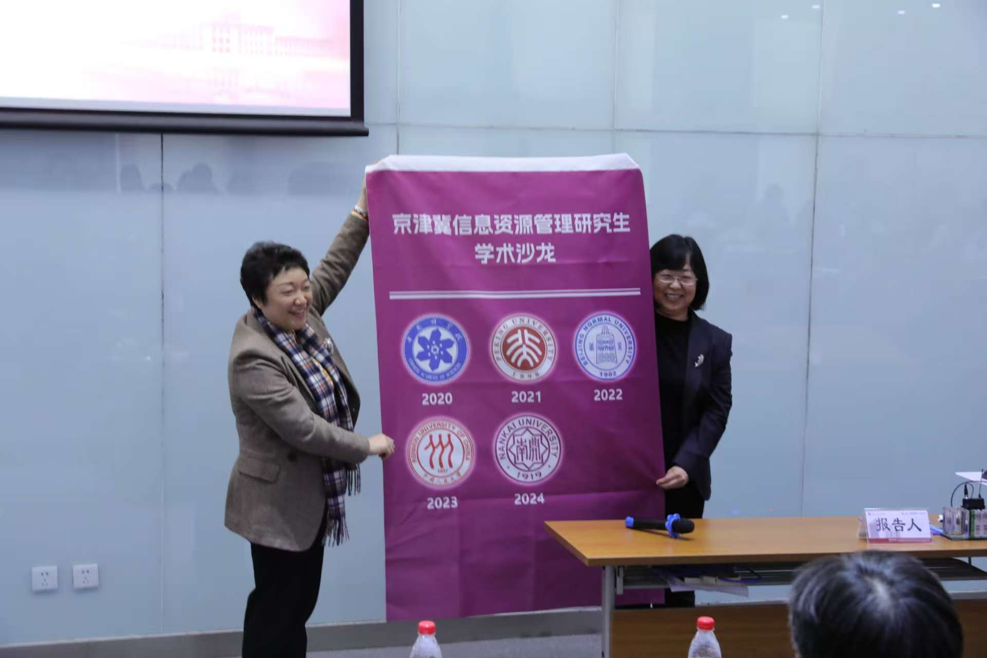 此次沙龙征文获得了来自京津冀多所院校的大力支持,为此,首次设立“优秀征文组织奖”,北京联合大学应用文理学院、北京师范大学政府管理学院信息管理系、河北大学管理学院、天津师范大学管理学院、中国科学院大学经济与管理学院信息资源管理系、中国人民大学信息资源管理学院6个单位获得“优秀征文组织奖”,承办单位代表李月琳、李颖为获奖单位颁奖。