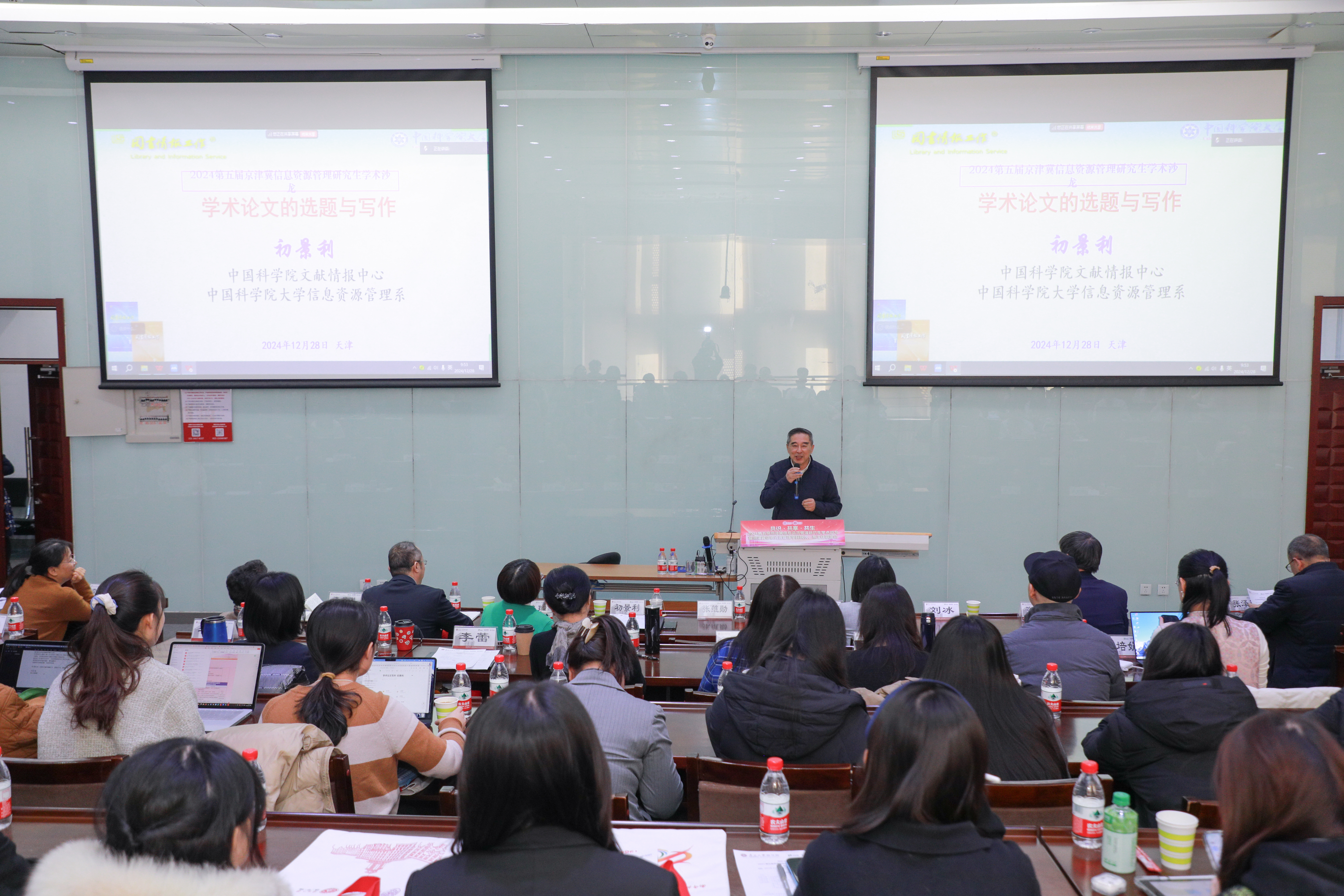 初景利教授做了题为《学术论文的选题与写作》的主旨报告。他从基本认知、选题策略、协作要求和投稿指南四方面指出,学术论文写作既是检验专业能力的重要方式,也是承担学术使命的集中体现;指出研究生应具有问题意识、科学思维,善于总结分析,培养思维逻辑、文献阅读、文字表达和专业知识能力;注重选题新颖性、方法独特性、内容原创性和结果前沿性;发展独立的学术见解、良好的学术视野、充分的分析论证与检验、独到的理论总结与提炼、严谨的学术规范与诚信、严密的逻辑结构与布局、坚强的科研毅力与韧性;要学会利用学术资源、平台和工具,坚决抵制学术不端行为,规范使用人工智能工具。最后,他以“道阻且长,行则将至。研精覃思,行远自迩”寄语研究生,鼓励他们精研细作,不断发展创新,提高学术研究水平。