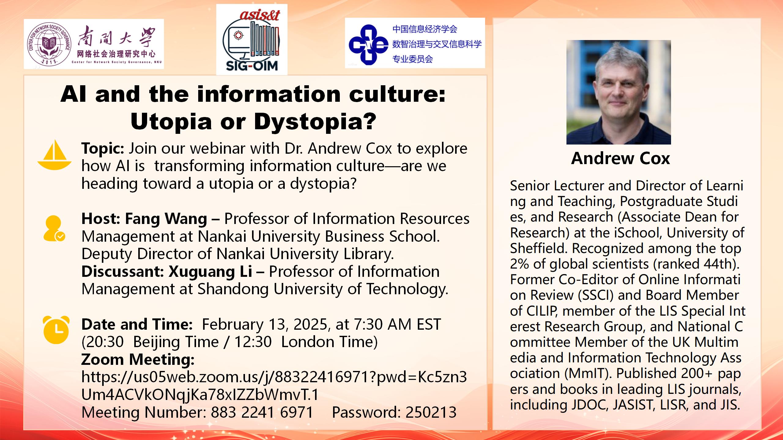 主题:AI and the Information Culture: Utopia or Dystopia?