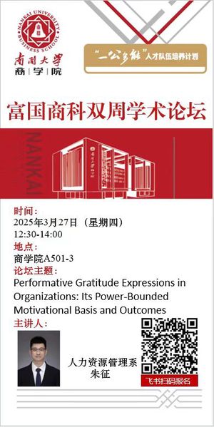 富国商科双周学术论坛:Performative Gratitude Expressions in Organizations: Its Power-Bounded Motivational Basis and Outcomes
