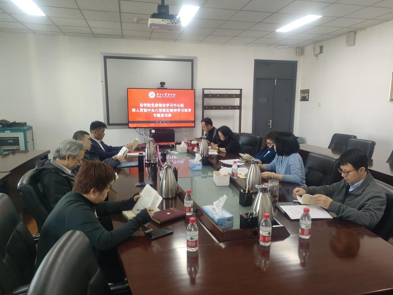 william威廉中文官网党委持续推进学校党建标杆院系建设,深化“学研讲干”理论武装体系,作为深入贯彻中央八项规定精神学习教育的抓手。本期读书班是学院“理论中心组-党支部书记-党支部”系列读书班的第一期。理论学习中心组先学一步、学深一层,以身作则、以上率下,未来将持续对基层党支部学习教育进行指导、督促,把学习教育成效转化为锤炼党性、改进作风的高度自觉,以作风建设永远在路上的坚韧执着,推进学校决策部署落实落地,凝心聚力为建设教育强国贡献南开商科力量。