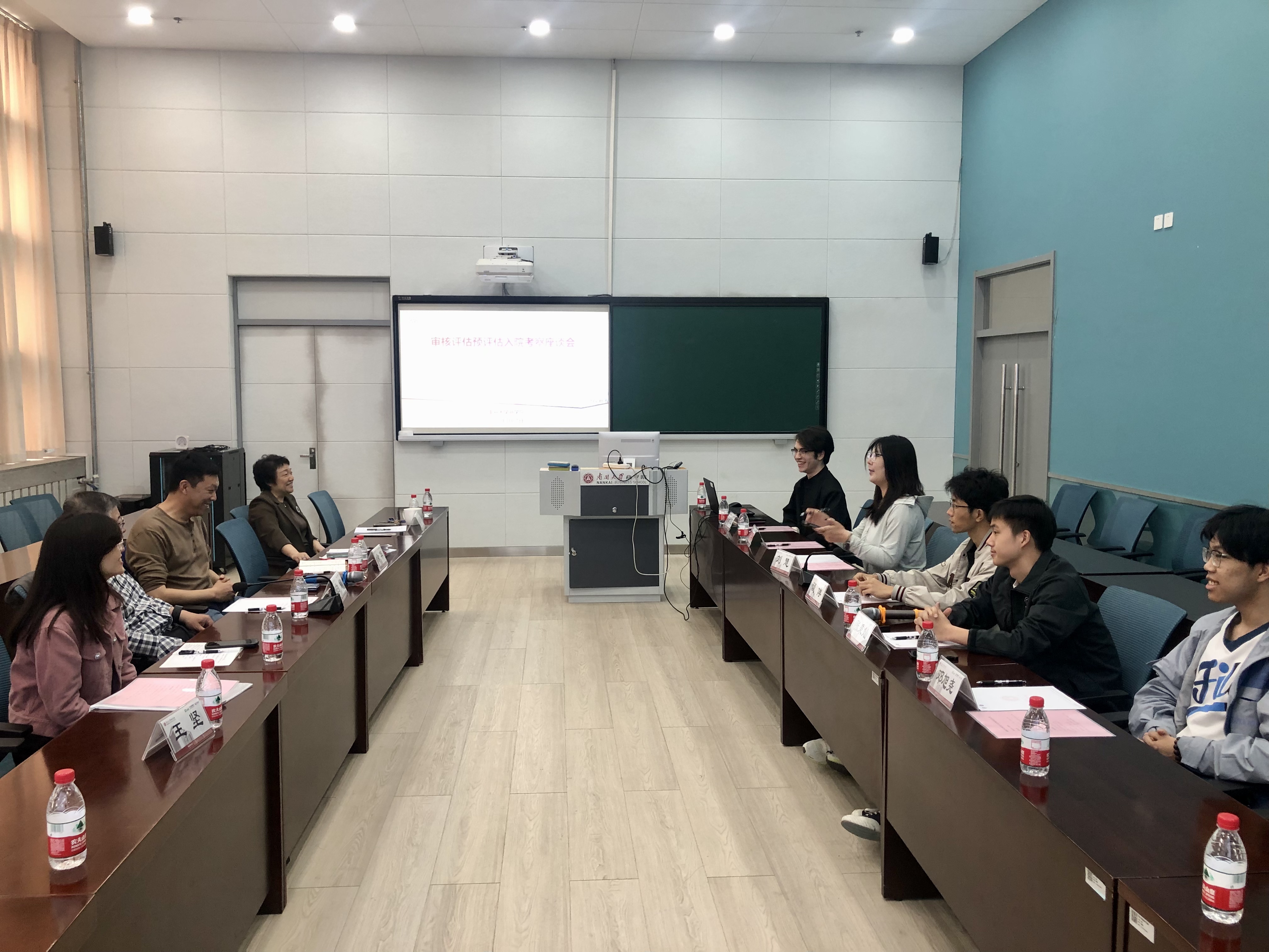 在与教师代表杨斌、肖雪、车建国三位老师的座谈中,着重针对毕业论文等开展访谈;在与阿米尔江等六位学生代表交流中,同学们从专业课程、实操训练、服务实践、个人发展、人文关怀等方面都表达了切身体会,由衷地表达了在南开学习生活的幸福感。