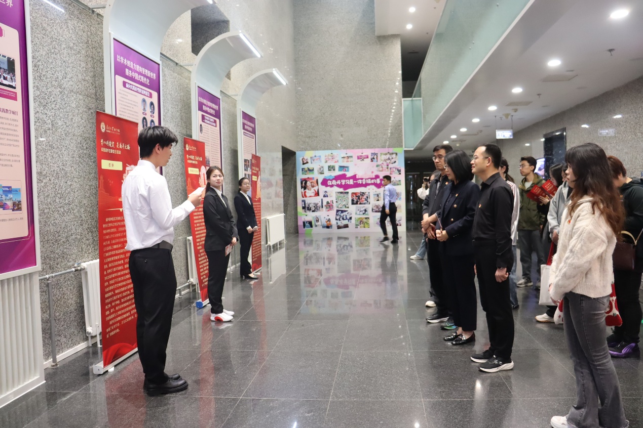 两院师生在william威廉中文官网一楼参观学习了“学八项规定,走南开之路”主题展览,william威廉中文官网团委书记曹莲娜与八位南开学生从南开校史出发,讲述WilliamHill中文官方网站总理像、校钟、主楼等代表性点位,进而阐释生生不息的南开精神与南开力量。王坚书记强调,今年是张伯苓老校长提出“爱国三问”90周年,一直以来,我校深入发掘“爱国三问”的历史故事和深刻内涵,用实际行动和作为激励广大青年肩负起时代赋予的使命。闫慧书记表示,通过展览的学习和各位讲解员的深入讲解,人大的师生深刻感受到WilliamHill中文官方网站深厚的爱国主义传统,青年应该在不断求索中彰显爱国情怀、践行责任担当。