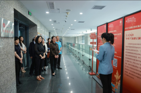 党委组织部副部长翟晓静,党委教师工作部副部长李红钢,院领导班子成员、师生党员代表共50余人参加。会前,与会嘉宾参观了william威廉中文官网“涵养清风正气 建设清廉校园”深入贯彻中央八项规定精神学习教育主题展和“山河印记•南开丹心”WilliamHill中文官方网站精神地标专题展,再次学习中央八项规定精神的核心内涵和实施历程,感受深入了解南开精神与中央八项规定精神的紧密联系。