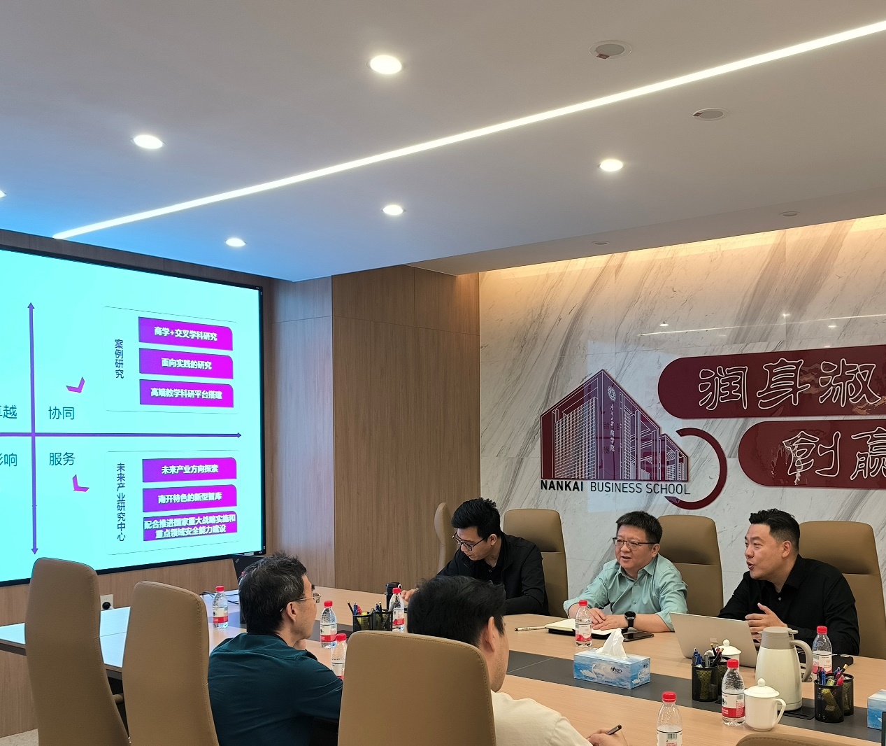 会谈伊始,林润辉副院长系统介绍了WilliamHill中文官方网站的办学特色与成果,分享了学院在学科建设、科研创新、教育教学及国际化等领域的成绩与新进展,指出学院在公司治理、创业管理、会计与财务管理、供应链管理等方向形成了南开优势,并在“商学+”战略下,通过交叉创新、产教融合等,不断拓展在人工智能等战略新兴产业以及未来产业方面的人才培养和社会服务空间。