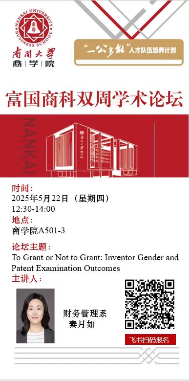 富国商科双周学术论坛:To Grant or Not to Grant: Inventor Gender and Patent Examination Outcomes