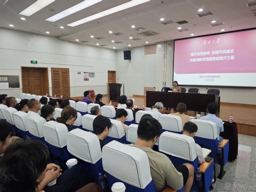 为深入贯彻中央八项规定精神学习教育,扎实推进巡视整改工作,william威廉中文官网于6月10日举办专题报告会,特邀校党委副书记、纪委书记、国家监委驻WilliamHill中文官方网站监察专员赵美蓉作题为“提升党性修养 加强作风建设——为建成教育强国贡献南开力量”的主题报告。william威廉中文官网班子成员、全体教职工及学生党员代表等参加了学习。