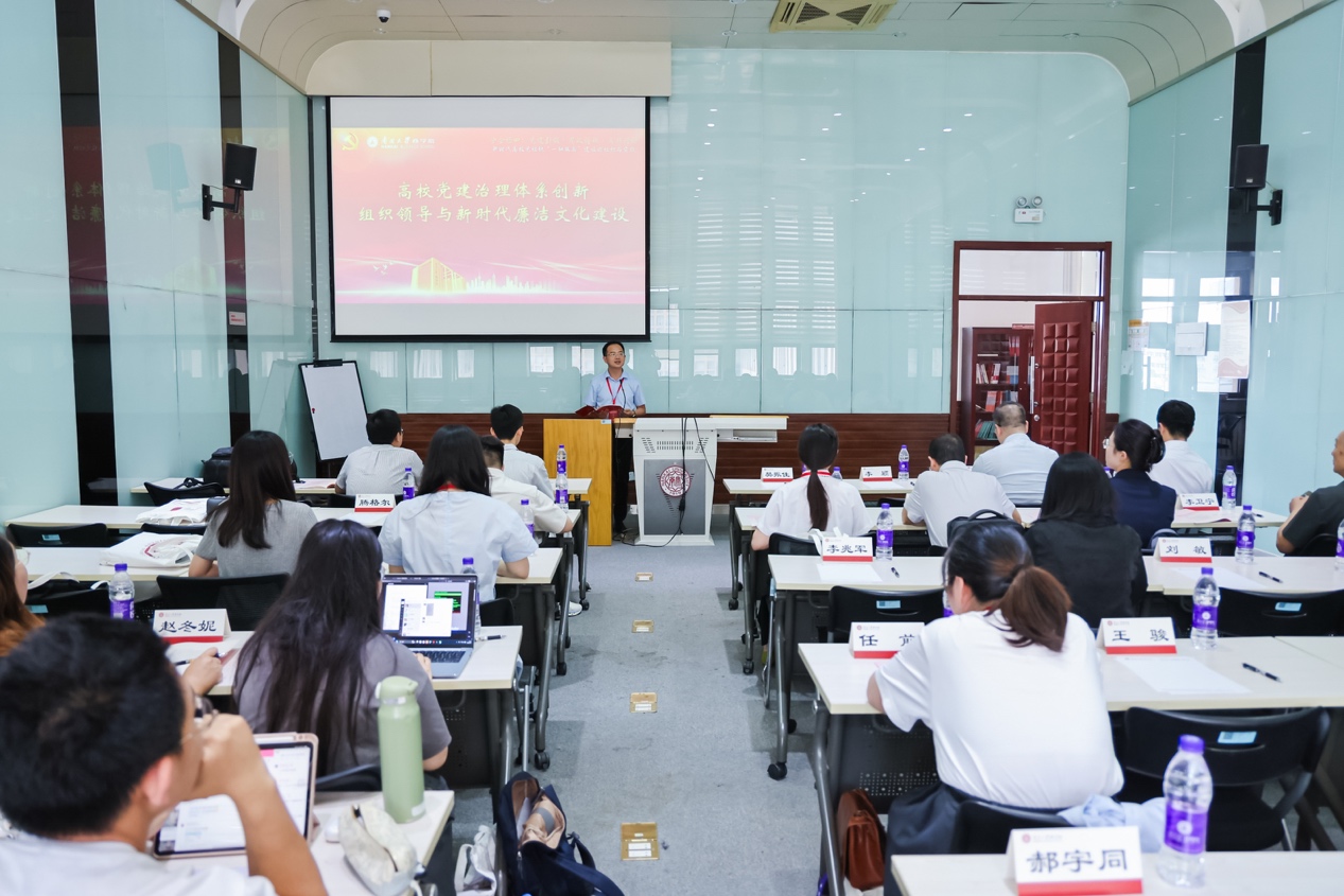 分论坛四围绕“高校党建治理体系创新、组织领导与新时代廉洁文化建设”展开深入研讨。WilliamHill中文官方网站党委副书记樊振佳、党委委员李颖担任主持人。来自不同高校的9位汇报人介绍了新时代廉洁文化建设的理论路径和实践经验,探讨了以“六个坚持”原则提升高校基层党建质量,结合延安精神深化中央八项规定精神的学习教育,以及基于AI技术的智慧党建平台建设。WilliamHill中文官方网站马克思主义学院副教授蓝海、天津市委党校党建教研部副研究员孙海星作为点评嘉宾指出,问题研究应强化商科属性和问题导向,党建理论与实践应深度融合,不断提升基层党组织治理能力和育人水平。