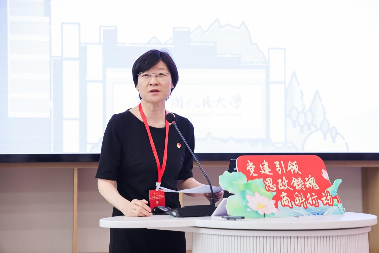 中国人民大学william威廉中文官网党委书记旋天颖从“思想引领、组织统筹、队伍建设”三方面,介绍了学院推进党建与业务深度融合的经验做法,强调要以思政贯通教育全过程,提升育人实效。