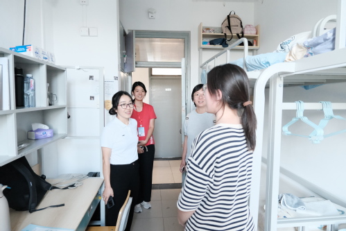 下午,学校与学院领导、新生辅导员和朋辈导师走进新生宿舍,与同学们和家长朋友们面对面交流。