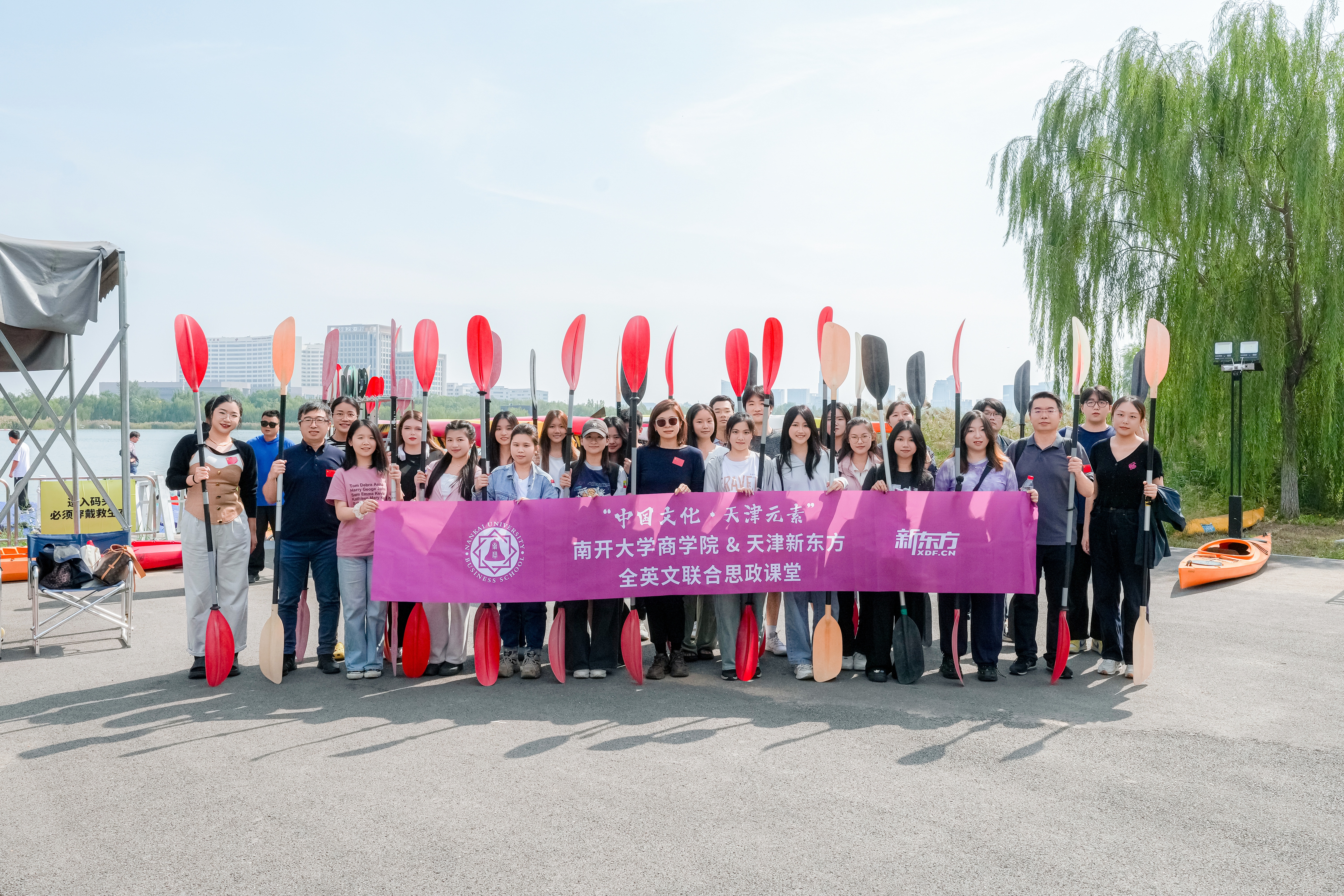 水不仅塑造了天津的城市格局,更孕育了独特的生活方式与运动传统,从早期的赛艇、龙舟运动普及,到如今皮划艇、桨板等新兴水上项目在水西公园这类生态空间的兴起,每一段历史都串联起天津与水的深厚羁绊。天津新东方老师以全英文讲解为留学生们展开一副“因水而生,依水而兴”的画卷。