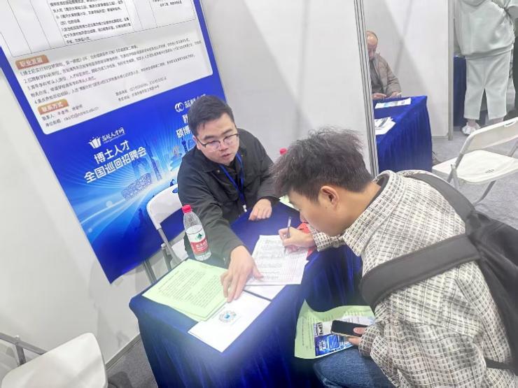招聘现场,工作人员围绕博士后科研平台支持、职业发展路径、保障政策等核心内容,与意向人才面对面交流,耐心解答大家关于科研项目申报、出站留任机会、生活配套服务等方面的疑问,帮助人才全面了解学院发展环境与个人成长空间,为双方精准对接搭建桥梁。