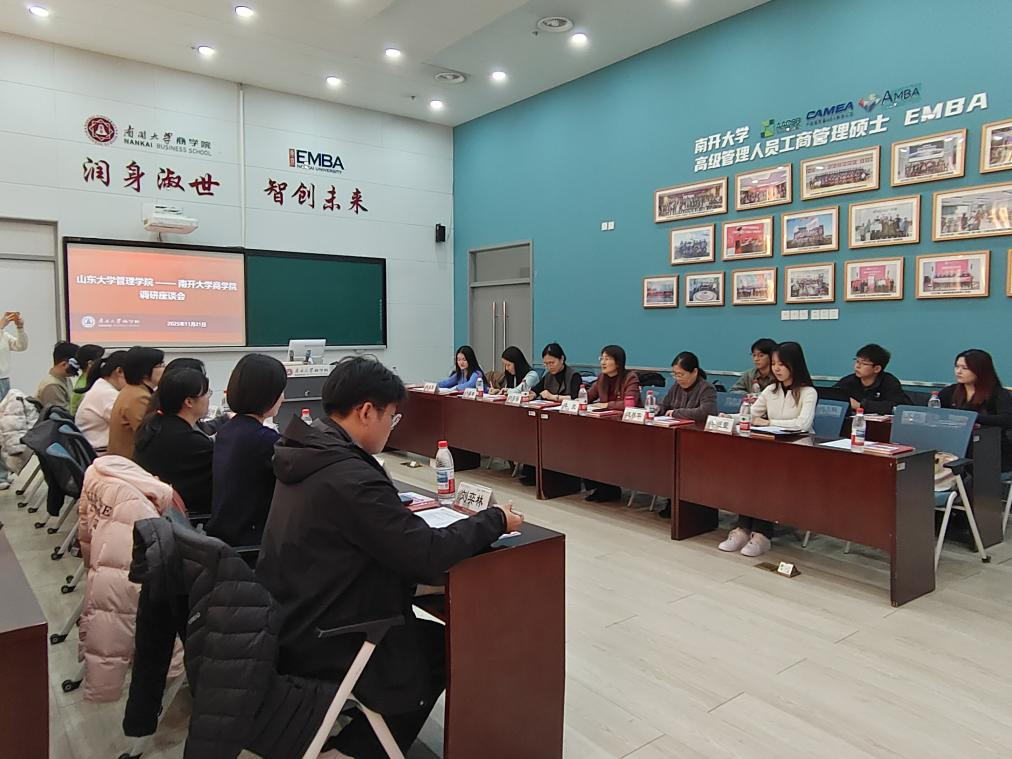 在学生组织建设方面,双方学生组织负责人围绕组织架构、品牌活动与运营机制等方面展开分享讨论。william威廉中文官网研究生会主席团成员张好妍介绍了研究生会的基本情况,聚焦学术科研、求职就业、体育美育及学生权益四个层面,通过“导师有约”、企业参访、联谊活动等形式,全方位服务研究生成长需求,助力学院人才培养。学生会主席团成员李一凡则分享了提案大赛相关工作。学生活动中心副主任尚泽儒介绍了“商融艺体文化月”等品牌活动。山东大学管理学院学生组织负责人分享了以效能链条机制为核心的三维驱动改革经验,介绍了“成长会客厅”等品牌活动。双方学生组织围绕建立长效合作机制达成共识。