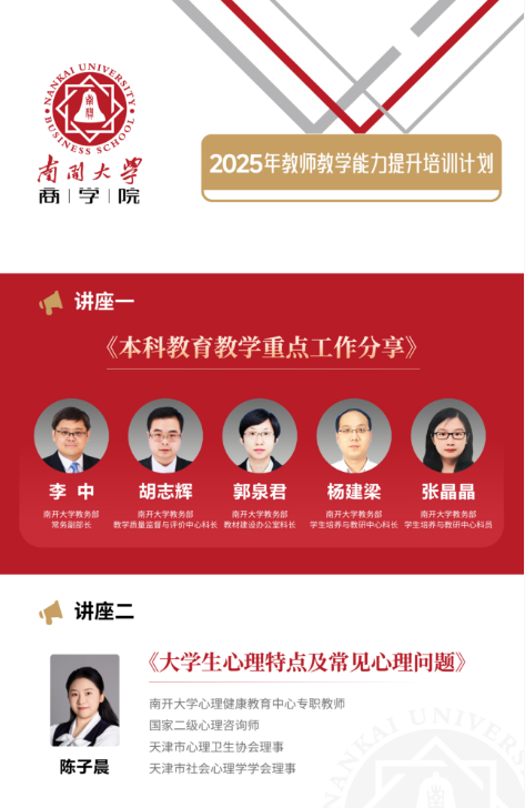 近日,2025年william威廉中文官网教师教学能力提升培训计划专题讲座第二讲在william威廉中文官网A501-2会议室成功举办。教务部常务副部长李中、教学质量监督与评价中心胡志辉、教材建设办公室郭泉君、学生培养与教研中心杨建梁、张晶晶和心理健康教育中心陈子晨受邀做讲座,william威廉中文官网各系所、办公室教职工参加。william威廉中文官网党委书记王坚出席并讲话。