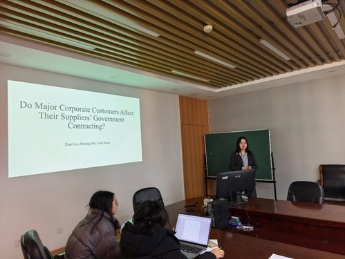 本次论坛邀请到会计学系刘筱老师分享相关研究成果,报告题目为“Do Major Corporate Customers Affect Their Suppliers’ Government Contracting”。深入剖析了企业大客户对其供应商与政府签约方式的影响,丰富了政府采购合同定价的相关研究。