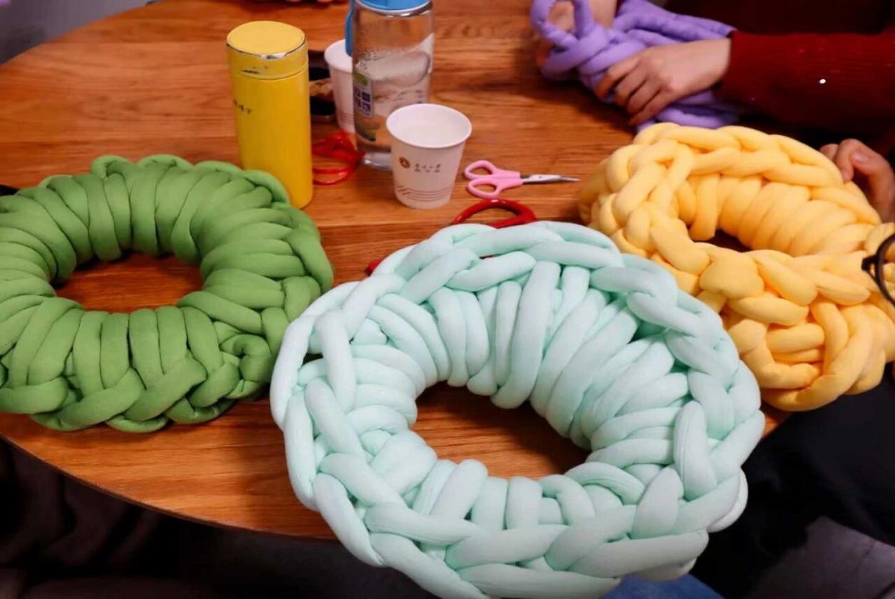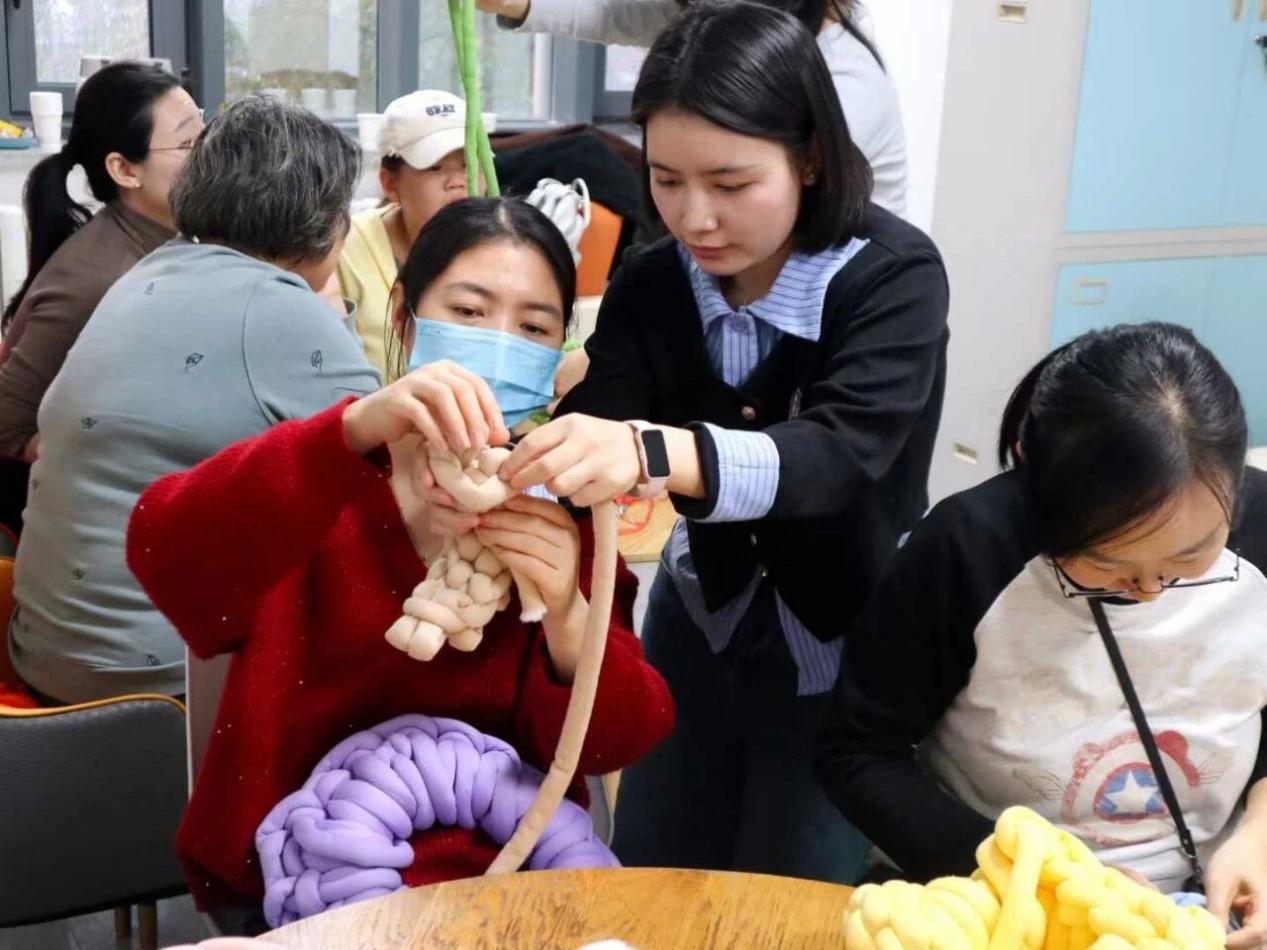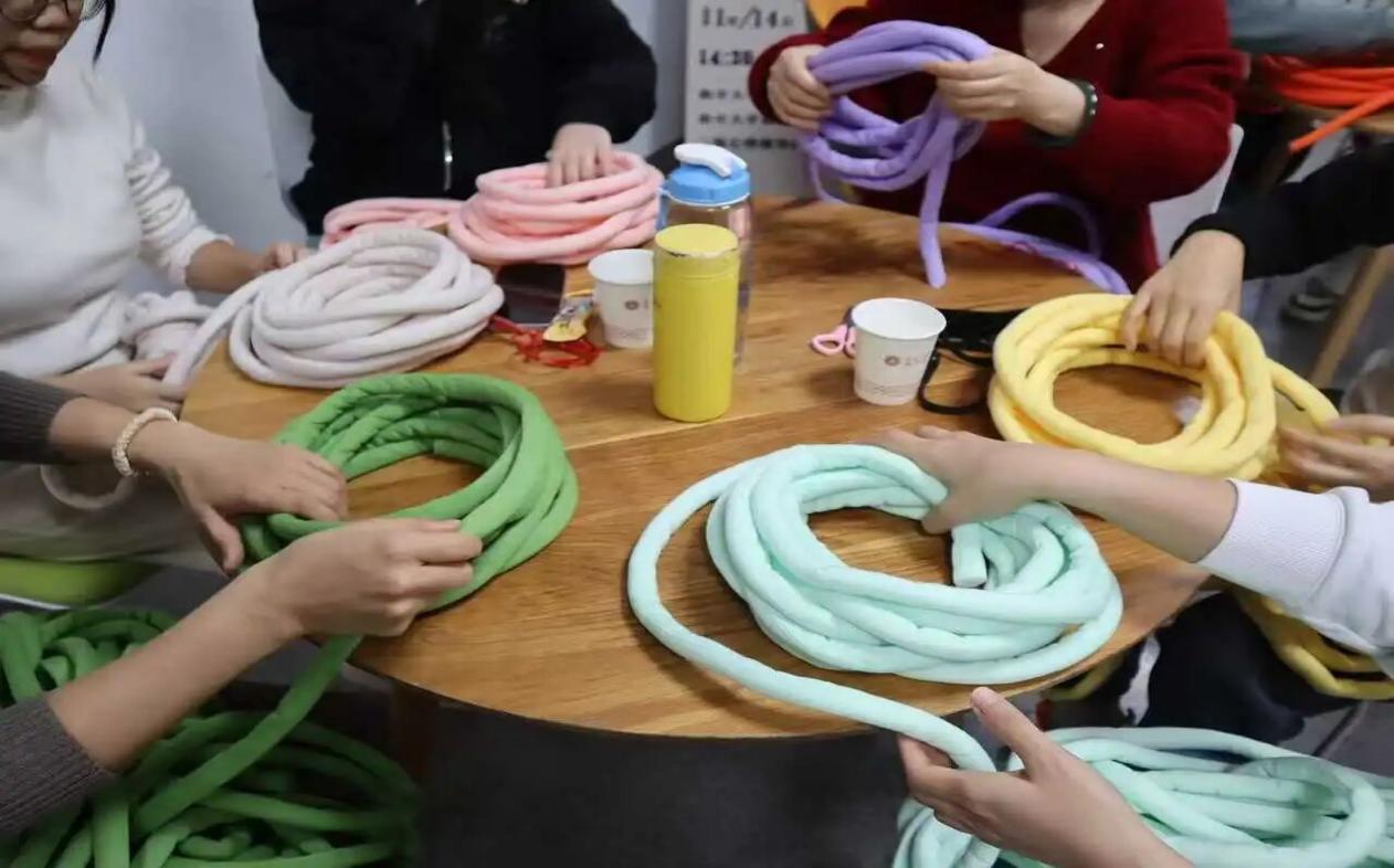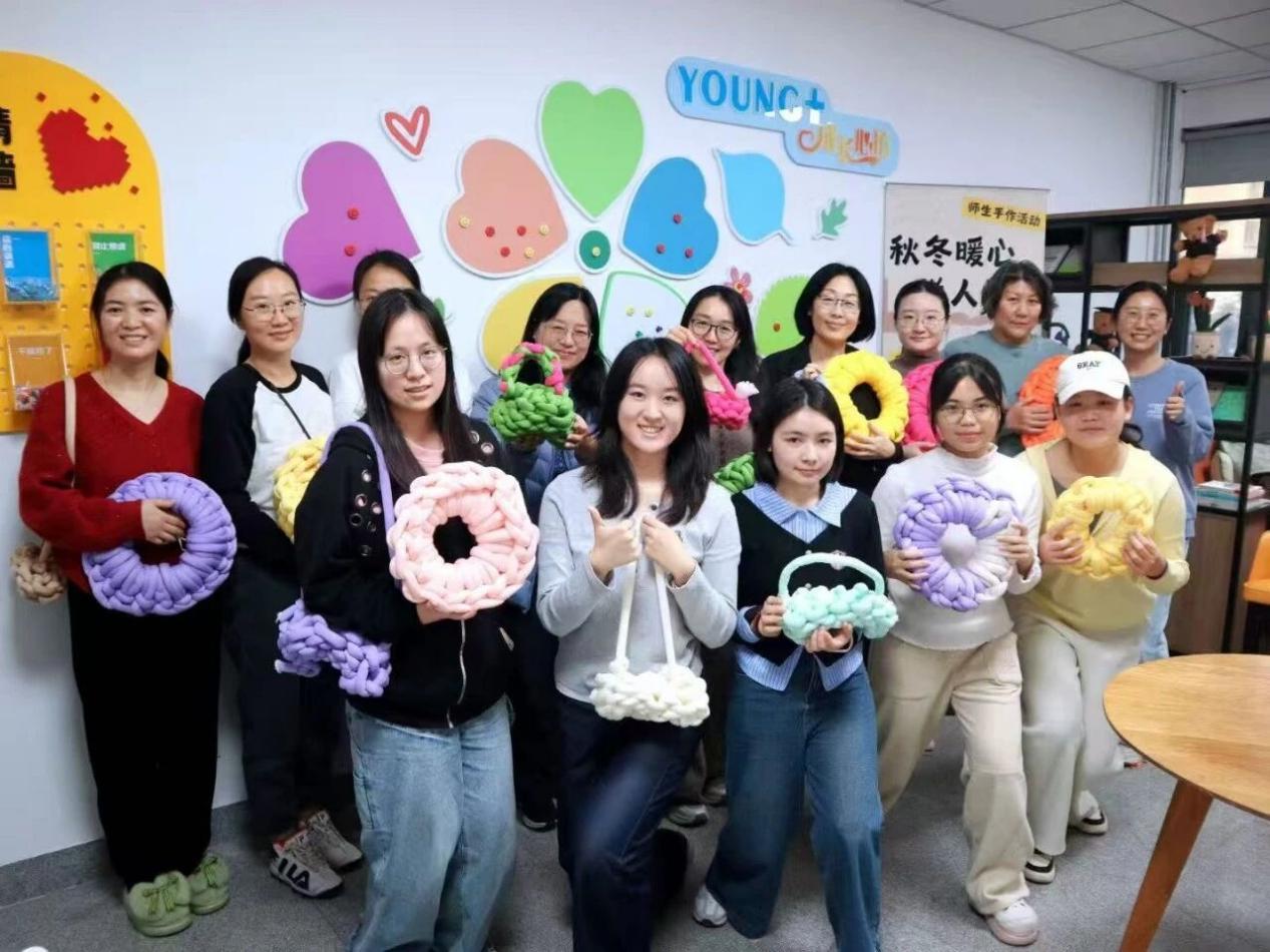 活动现场,教职工们在专业指导下,亲手钩织制作坐垫或手提包。一针一线间,不仅是对技艺的学习与体验,更是一段专注当下、释放压力的宁静时光。成品兼具实用功能与美学价值,无论是置于办公座椅增添一份舒适,还是作为日常通勤的时尚搭配,都能在日常中持续传递温暖。