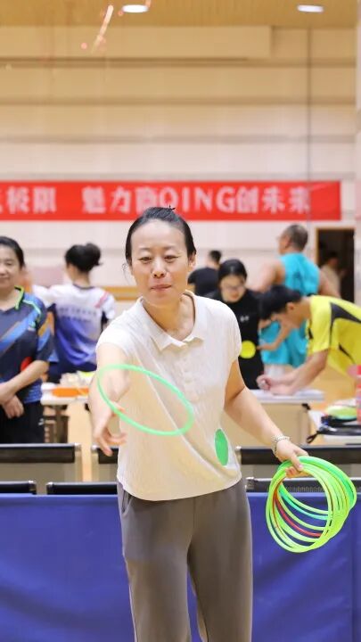 活动于12:30拉开序幕,老师们陆续抵达现场,热情参与热身运动和签到环节,领取了精美的活动奖品并贴上了多彩的队贴。现场还设置了趣味“套圈”互动游戏,老师们踊跃参与,欢声笑语不断,为活动增添了轻松愉快的氛围。