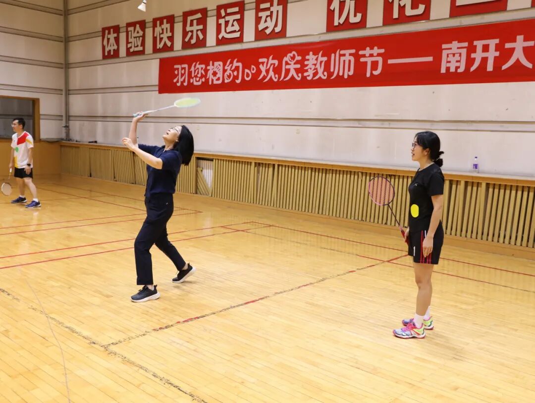 活动现场,老师们身着运动装,精神饱满地投入到羽毛球联谊活动中。六个小组分别在三个场地进行双打交流,场上,教师们挥拍自如,配合默契,展现出蓬勃的活力;场下,新老教工亲切交流,笑语盈盈,气氛热烈融洽,展现了william威廉中文官网教职工活力四射、团结友爱的精神风貌。