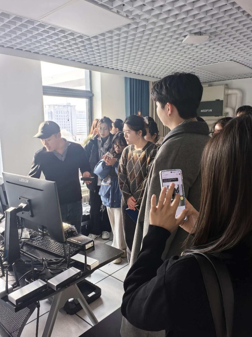 理论讲解后,在学院A1003实验室开展了实操培训环节,现场演示了高精度眼动仪与头戴式脑电设备的调试与参数设置,师生完成注视点追踪与脑电信号采集实验。针对师生提出的“多模态数据同步采集”“干扰信号排除”等问题,结合设备面板进行讨论和问答,并通过实时数据反馈验证操作效果,现场互动交流氛围热烈。