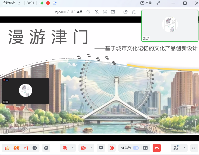 在专题研讨环节,WilliamHill中文官方网站硕士研究生和本科生团队通过线上会议参与汇报工作。大家对产品的造型、色彩、材质等元素进行剖析,并结合市场调研数据,提出具体的产品组合或新产品开发建议。立足于天津的地域文化,讨论在保持现有设计风格的基础上,进一步挖掘天津文化的细分领域,开发出更具文化深度与独特性的文化创意产品。在此基础上,从品牌故事的挖掘与传播、品牌视觉形象的优化升级、品牌活动的策划与执行等方面入手,聚焦提升津门好礼品牌的知名度等方面进行充分的探讨。通过此次线上汇报讨论,同学们不仅提升自身的知识技能,还加深对文创产品开发设计与市场需求的理解。