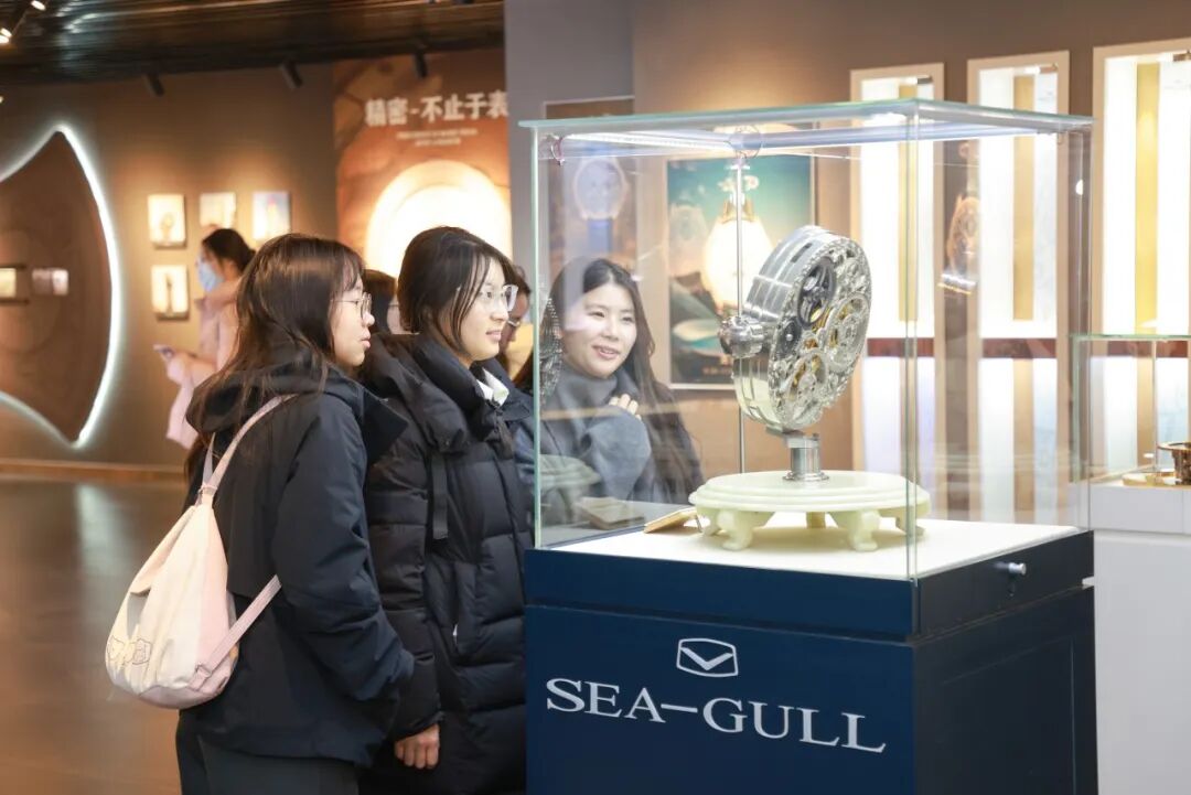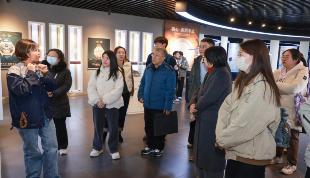 师生参访第二站来到天津海鸥表业集团有限公司。在天津海鸥表博物馆内,从中国第一枚机械表“五星表”到如今融合工艺与创新的高端腕表,海鸥表七十余年坚持自主研发的历程,生动展现了民族品牌坚守与创新的精神。师生围绕机芯技术突破、国潮创新及品牌国际化等议题与企业展开讨论,纷纷表示要将海鸥表的创新奋斗精神融入个人成长与职业发展中。