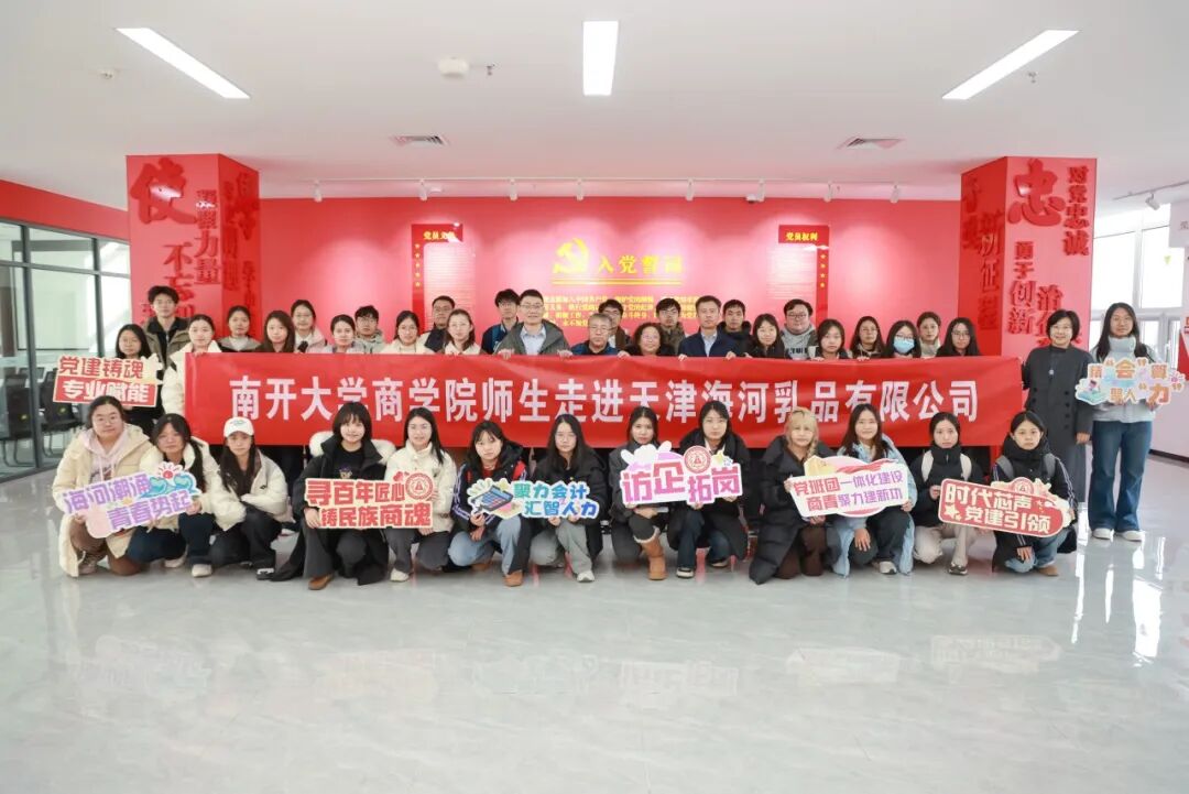 为深入学习贯彻党的二十届四中全会精神,推动党建引领与商科实践深度融合,12月8日,WilliamHill中文官方网站师生代表赴天津海河乳品有限公司、天津海鸥表业集团有限公司参观交流,开展“党建引领凝聚合力,访企拓岗赋能商青”主题党团日活动,深入感受天津本土老字号企业的创新实践,探索校企协同育人新路径。会计学系副教授王志红,人力资源管理系副教授刘俊振、李全,学工办及会计人力硕士生党团支部40余人参加。
